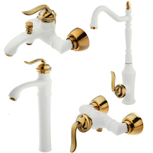 ست ۴ تکه شیرآلات اهرمی سزار مدل قاجاری سفید طلایی