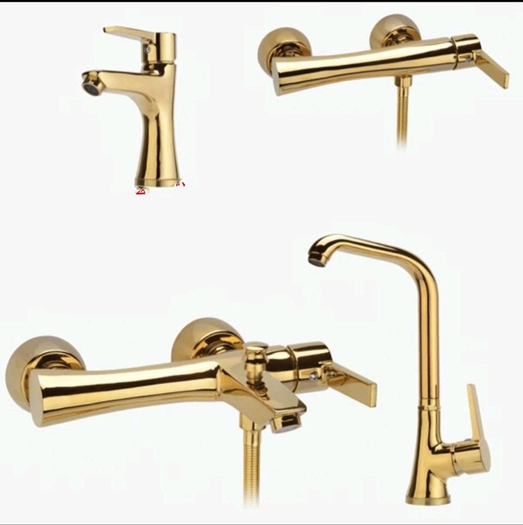 ست ۴ عددی شیرآلات اهرمی سزار مدل پارمیس طلایی سنگین