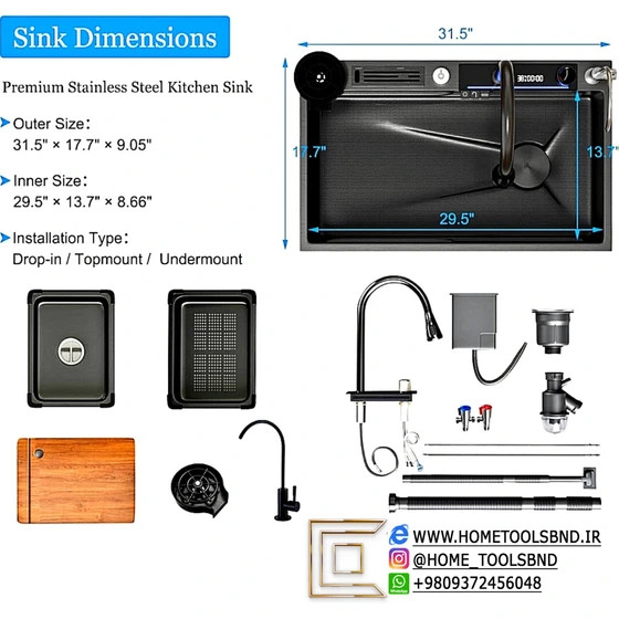 سینک آبشاری پیانویی مدل 5 کلید مارک هایشن دودی 304
