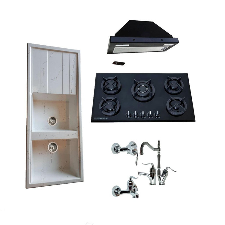 ست هود مخفی اجاق گاز رومیزی سینک گرانیتی شیرآلات مدل f86