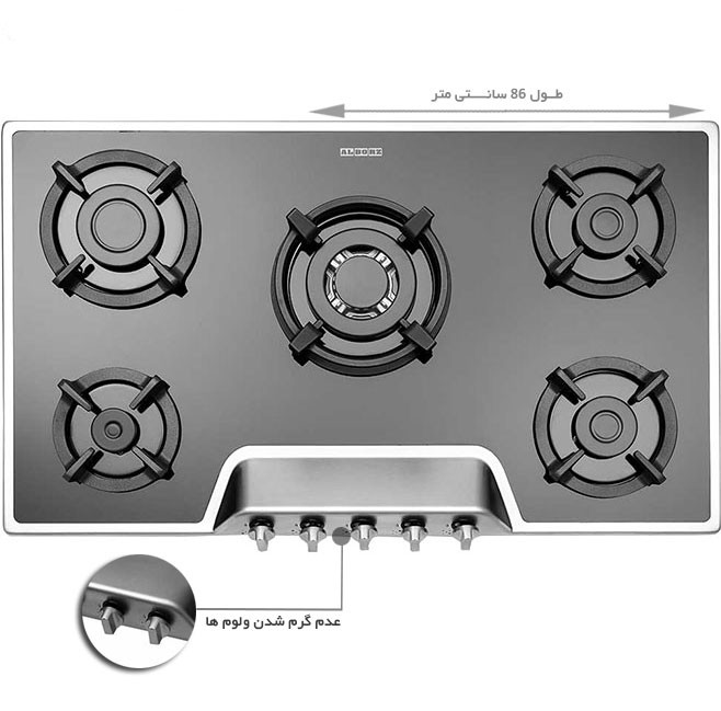 اجاق گاز شیشه ای دور استیل استیل البرز مدل G 5951s
