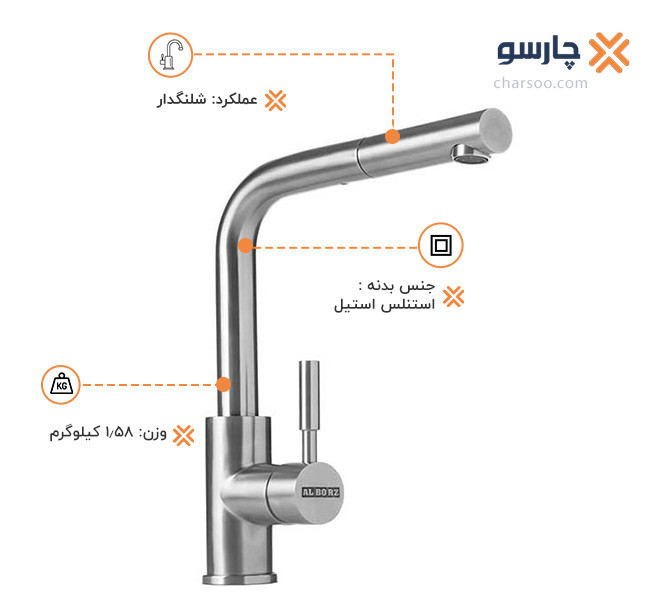 شیرآلات ظرفشویی شاوری استیل البرز مدل ST311 کروم مات