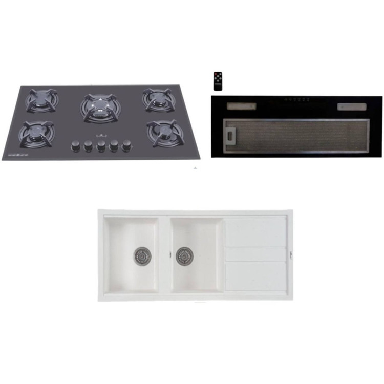 ست هود مخفی لمسی سینک گرانیتی درجه یک و اجاق گاز رومیزی فندک دار مدل ۵۸۶
