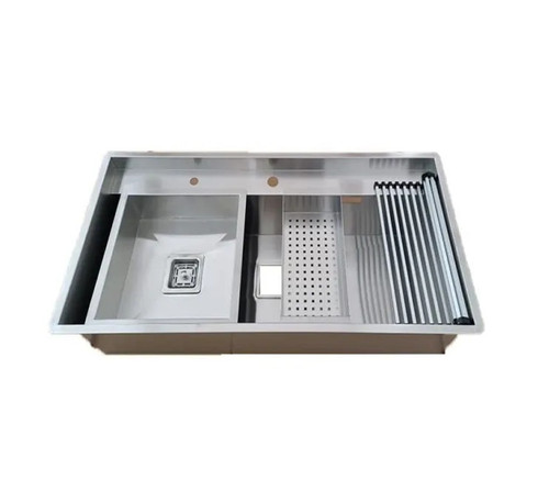 سینک دستساز بنتو دو پله مدل D90 با لوازم ورق ۱.۲ میل