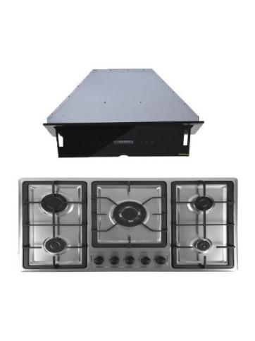 ست هود اجاق گاز رومیزی استیل نگیر و هود مخفی دو موتور فلزی کف شیشه مدل. ۸۹۵